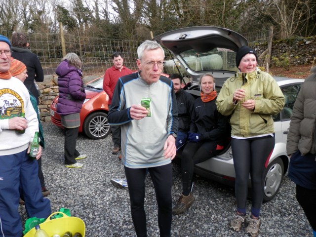 A great trail then followed with an uber wimps split (though to be fair to Freddy he does have rather short legs) and 2 Wimp/Rambo splits. Regulars, visitors and virgins alike followed a lovely trail through field and country lane. Twisted and Comes To Order assure me the Rambo split was a good one, I’ll take their word for it. Wimp splits were well marked, stable under foot, not too shiggy and the falling snow added to a lovely run (and when I say run I mean jog…….well jog/walk).