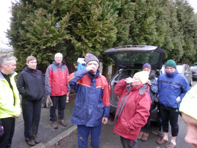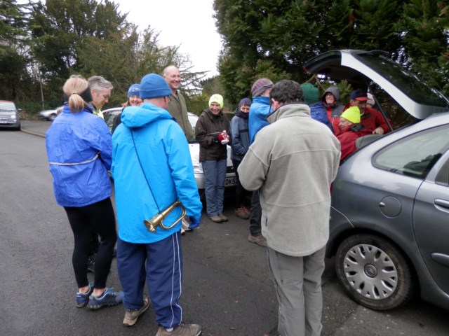 Despite a cold, overcast and blustery day the r*n saw a good turnout of Hounds assemble at Melling Hall. However, the cars parked close to his driveway proved too much for one local resident and Bubbles had to defuse the situation. With frantic waving of arms the sea of cars was parted.