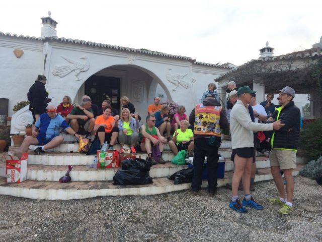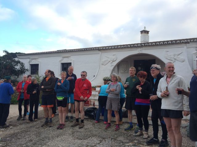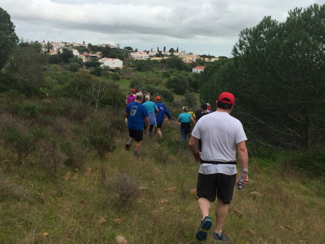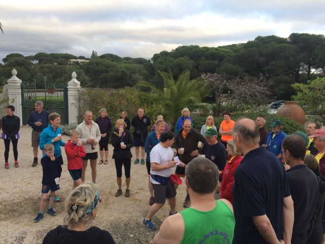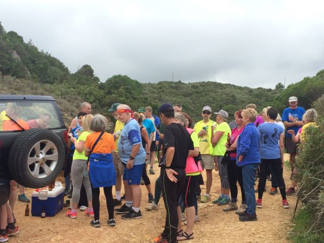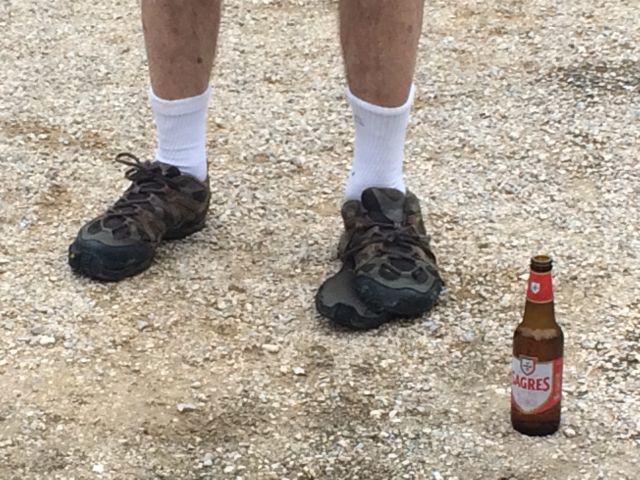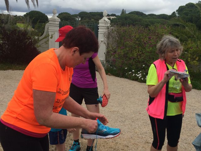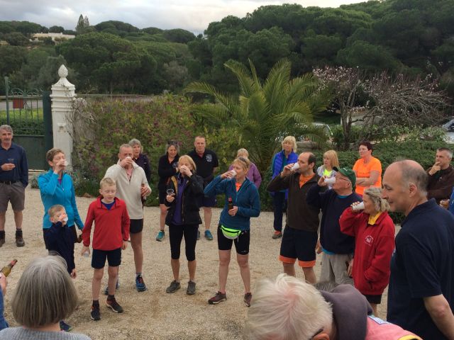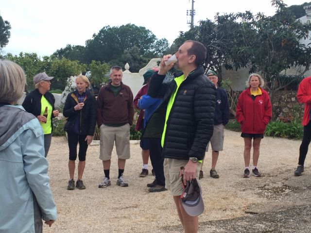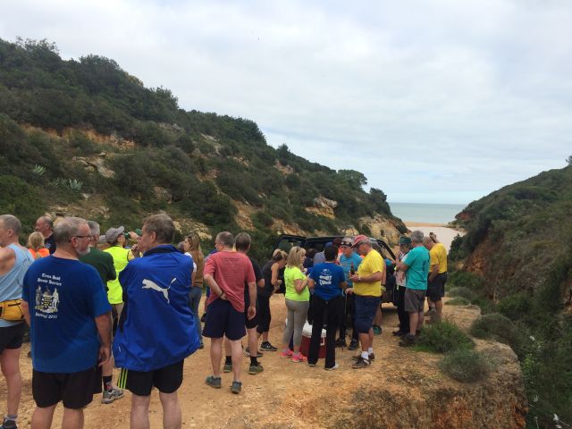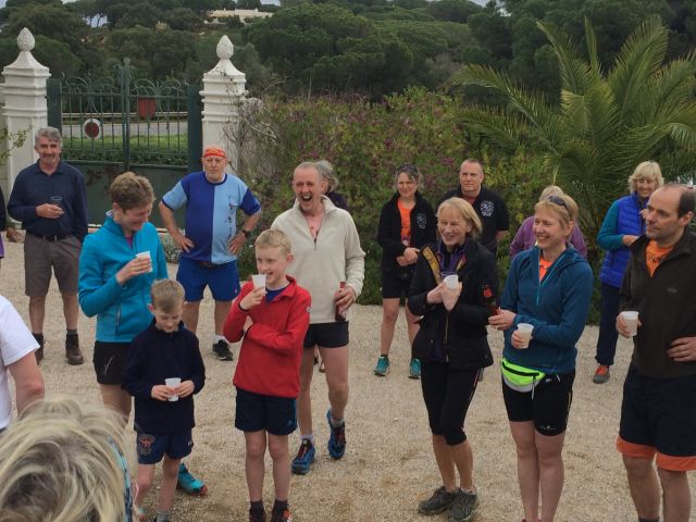 We were welcomed with open arms and open ice boxes full of beer by BirdWoman and many other members of Algarve hash. But were we able to set off on this mammoth hash with warm, dry feet? NO – not all of us as our eagle-eyed Antiseptic had spotted a plethora of shiny new shoes. In fact one whole family must have spent a small fortune at Pete Blands that week. After the obligatory waste of beer draining through shoes, welcomes, thank yous and a bit of present giving we set off – some of us with one foot soggier than the other!