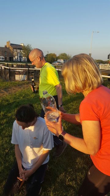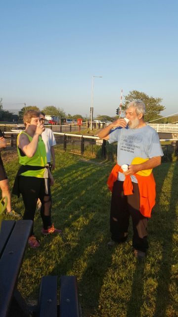 It wasn't just the quality of the marking which made this trail an outstanding piece of craftsmanship - Fiddler distinguished himself by including a beer stop, a feature almost unheard of on evening r*ns. Other plus points: the length (or rather lack of it), and the total lack of shiggy (apart from Darth Vader treading in the only cowpat on the entire trail in an attempt to avoid a platoon of bovine quadrupeds.