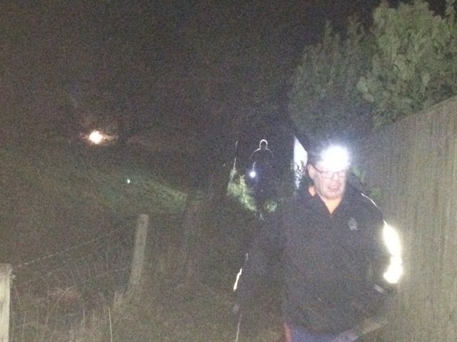 And what a lovely trail WhiteNoise and OffHisTrolley laid - sure, we couldn't see a thing - but it sounded good, so long as we could hear the river beside us and not get wet, all was well. Apparently there was a Fish-hook, but the rambos were going so fast and with only the thought of liquid refreshment on their mind, the last thing they were thinking of was going back to pick up the wimps - sorry! But we did manage to get a good table in the pub for you - once we had evicted the poor couple who had come out for a quiet night before retiring to their tent(!)